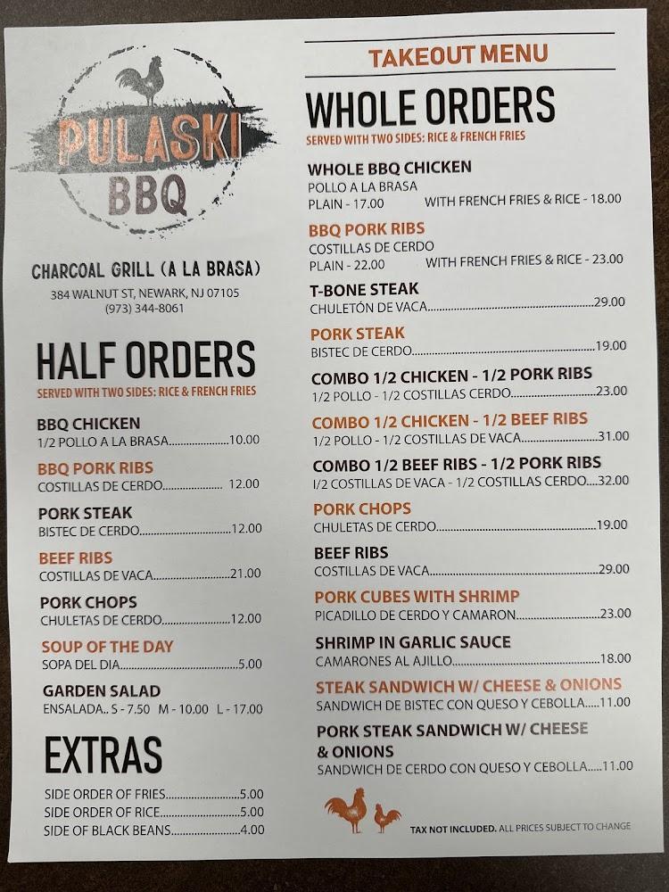 Welcome to Pulaski BBQ, the premier destination for mouthwatering grilled dishes in Newark, NJ. Situated at 384 Walnut St, our restaurant offers a relaxed yet stylish atmosphere perfect for solo diners, groups, and families alike. Enjoy a delicious variety of traditional Portuguese cuisine, including our famous ribs and crispy fries, available for dine-in, takeout, or delivery. With accessible seating, free parking, and a welcoming vibe, Pulaski BBQ is ideal for lunch, dinner, or a quick bite. Join us for an unforgettable dining experience, where great food meets exceptional service. Call us at +1 973-344-8061 to learn more!